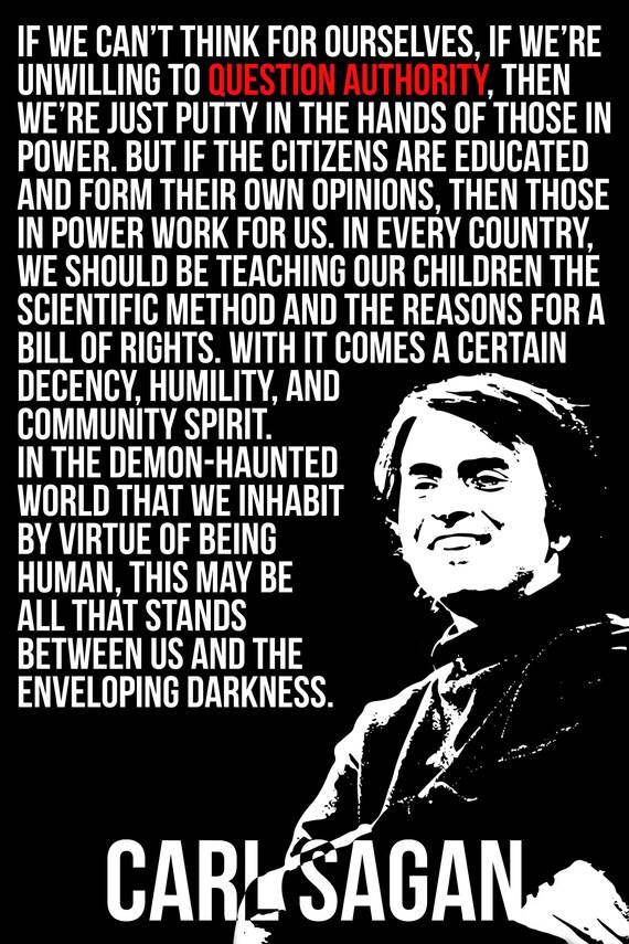 Carl Sagan Poster Question Authority Carl Sagan Quotes Etsy