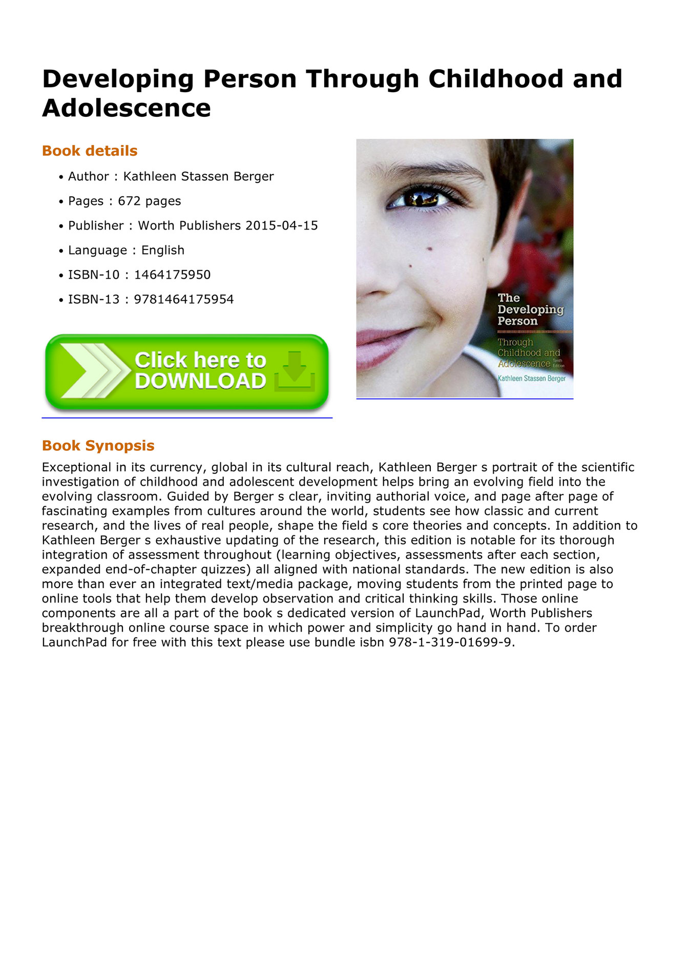Developing Person Through Childhood And Adolescence 10 P Launchpad For Bergers Developing Person Through Childhood And Adolescence 10e Six Month Access Kathleen Stassen Berger 1319016979
